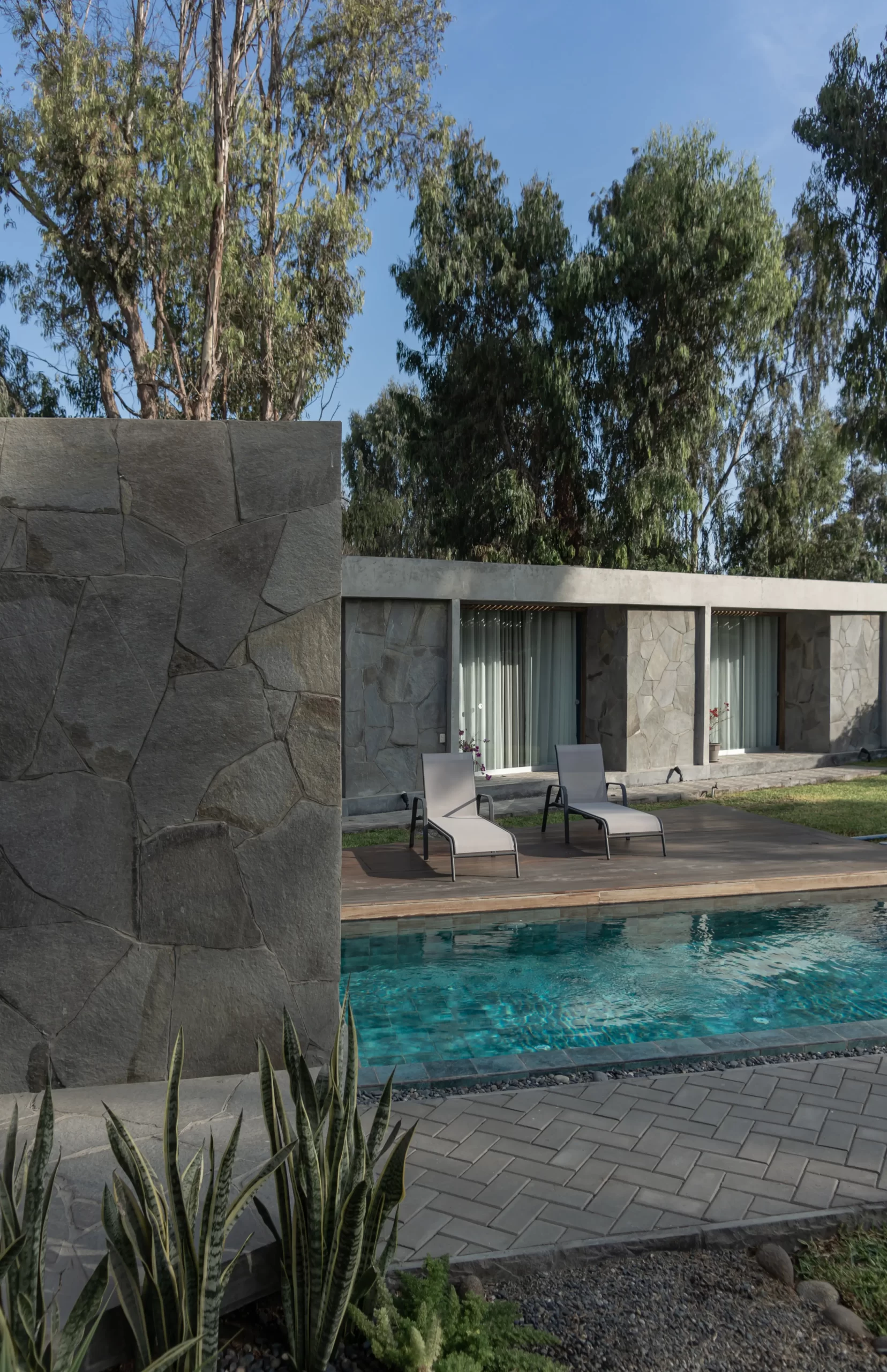 La casa laja es una vivienda unifamiliar ubicada en Lurín. El proyecto busca enmarcar las visuales hacia el paisaje utilizando la arquitectura como medio de conexión. El concepto se basa en moldear el habitar de los usuarios mediante la combinación de materialidad y la distribución de los espacios. El material predominante es la laja ayacuchana y esto le da un carácter más rústico y ayuda a que la vivienda se adapte al lugar.